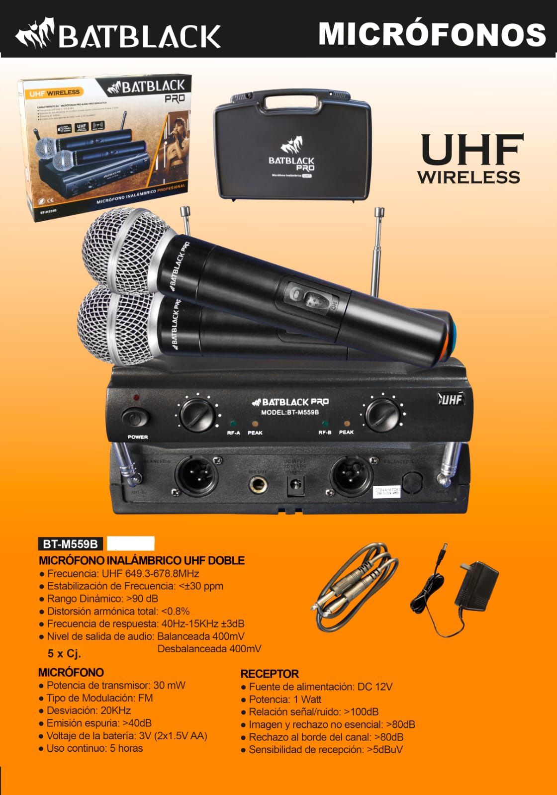 Microfono Inalambrico BATBLACK doble mano UHF